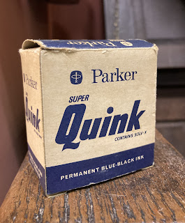 There's still a bottle of Quink upstairs but my Scheaffer takes cartridges! I have been known to syringe new stuff into an empty cartridge a few times too!